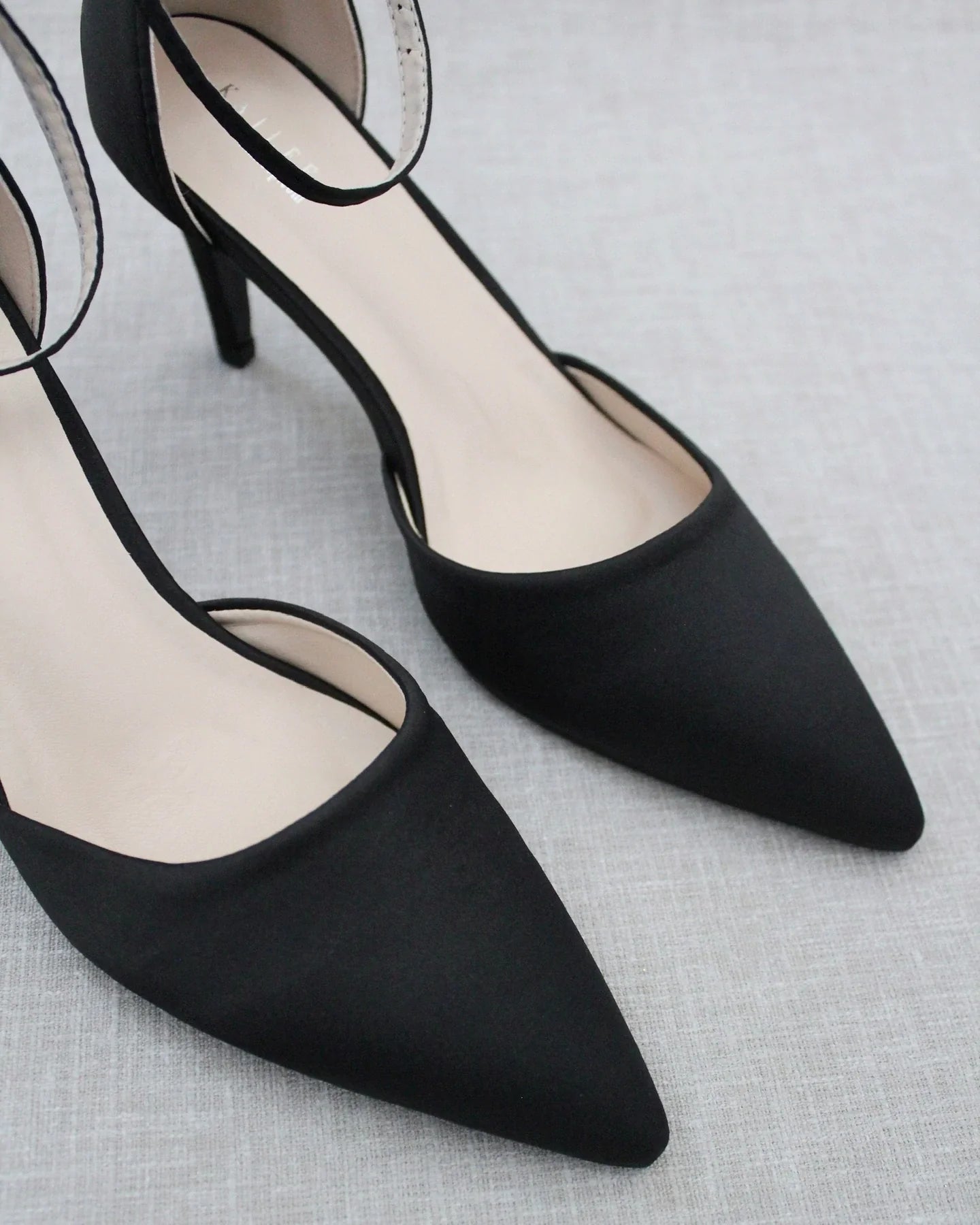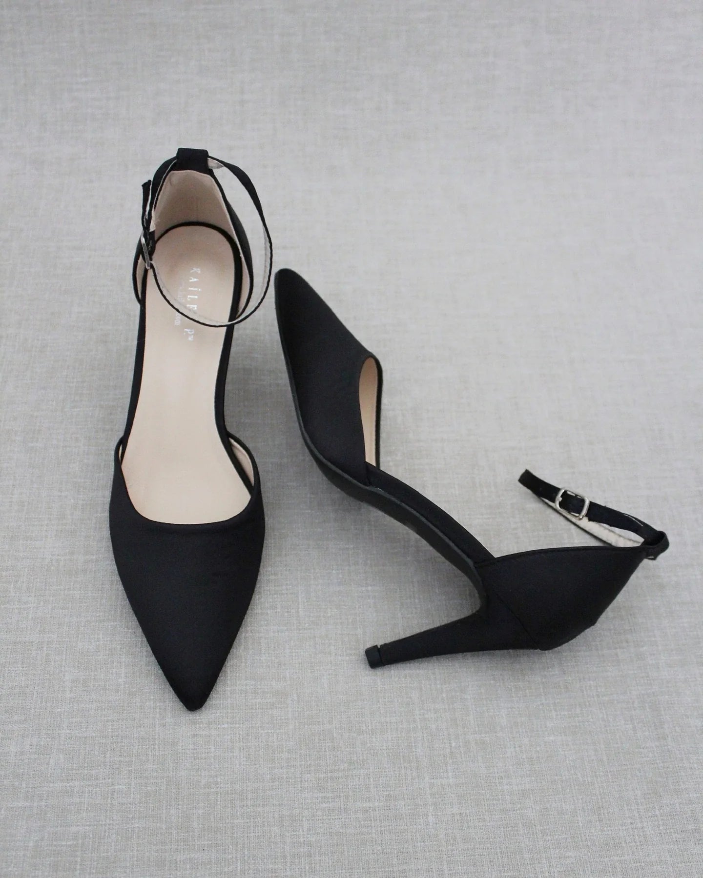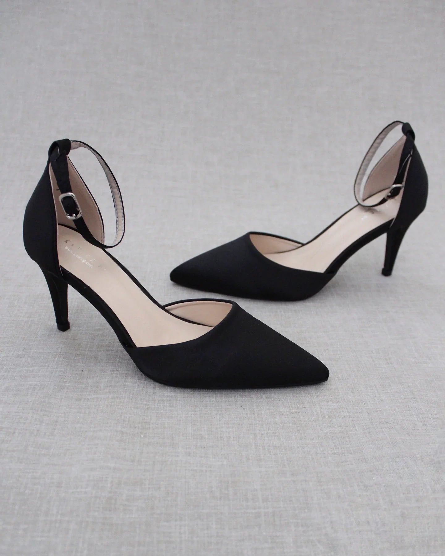 Elegantit ja pelkistetyn tyylikkäät teräväkärkiset korkokengät irrotettavalla nilkkaremmillä. Upeat ja ajattomat juhlakengät tai hääkengät kaikkiin elämäsi tähtihetkiin. Muunna mieleiseksi lisäämällä irrotettavat kenkäkoristeet!