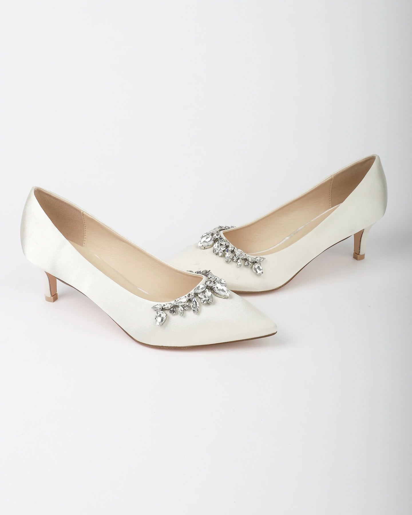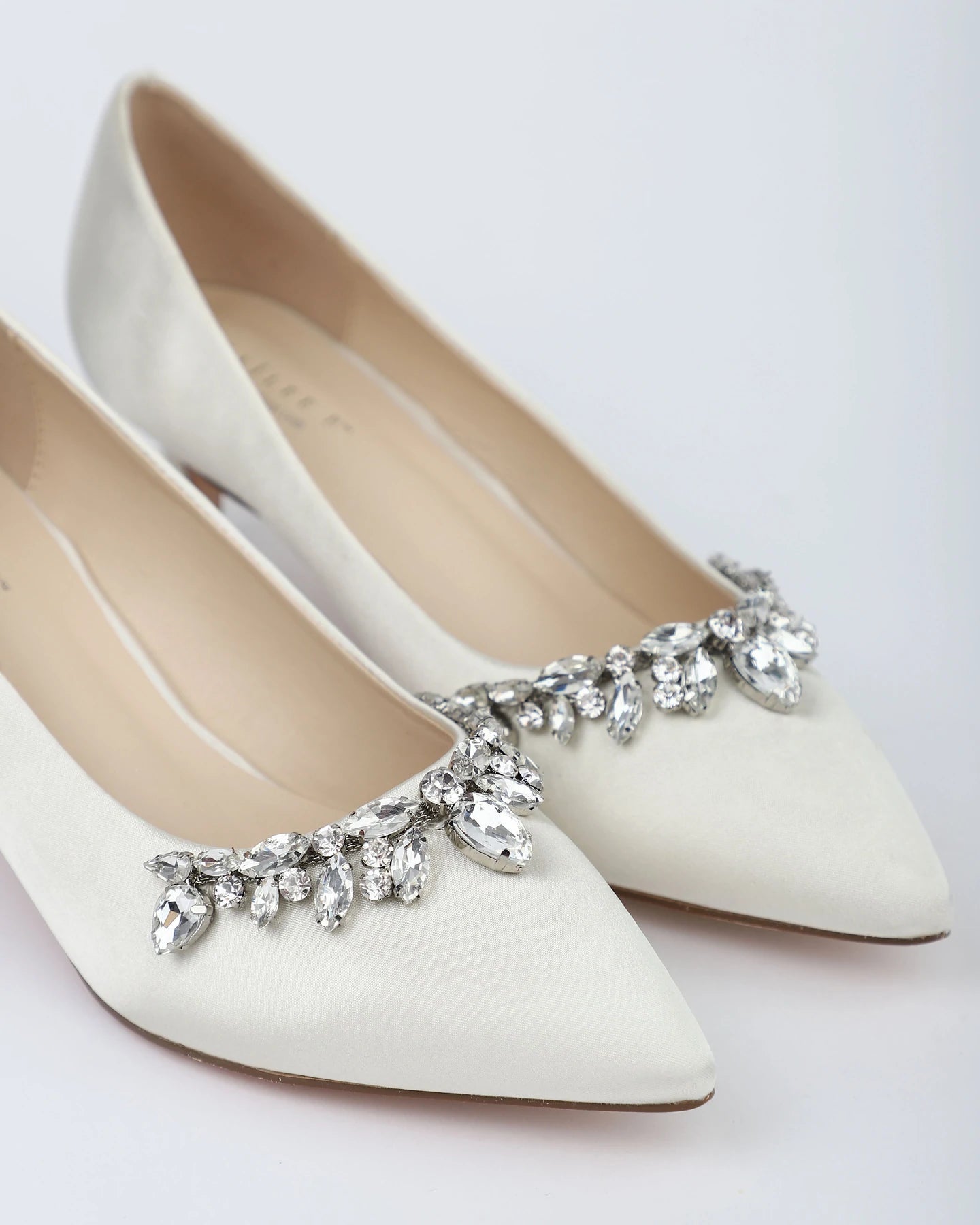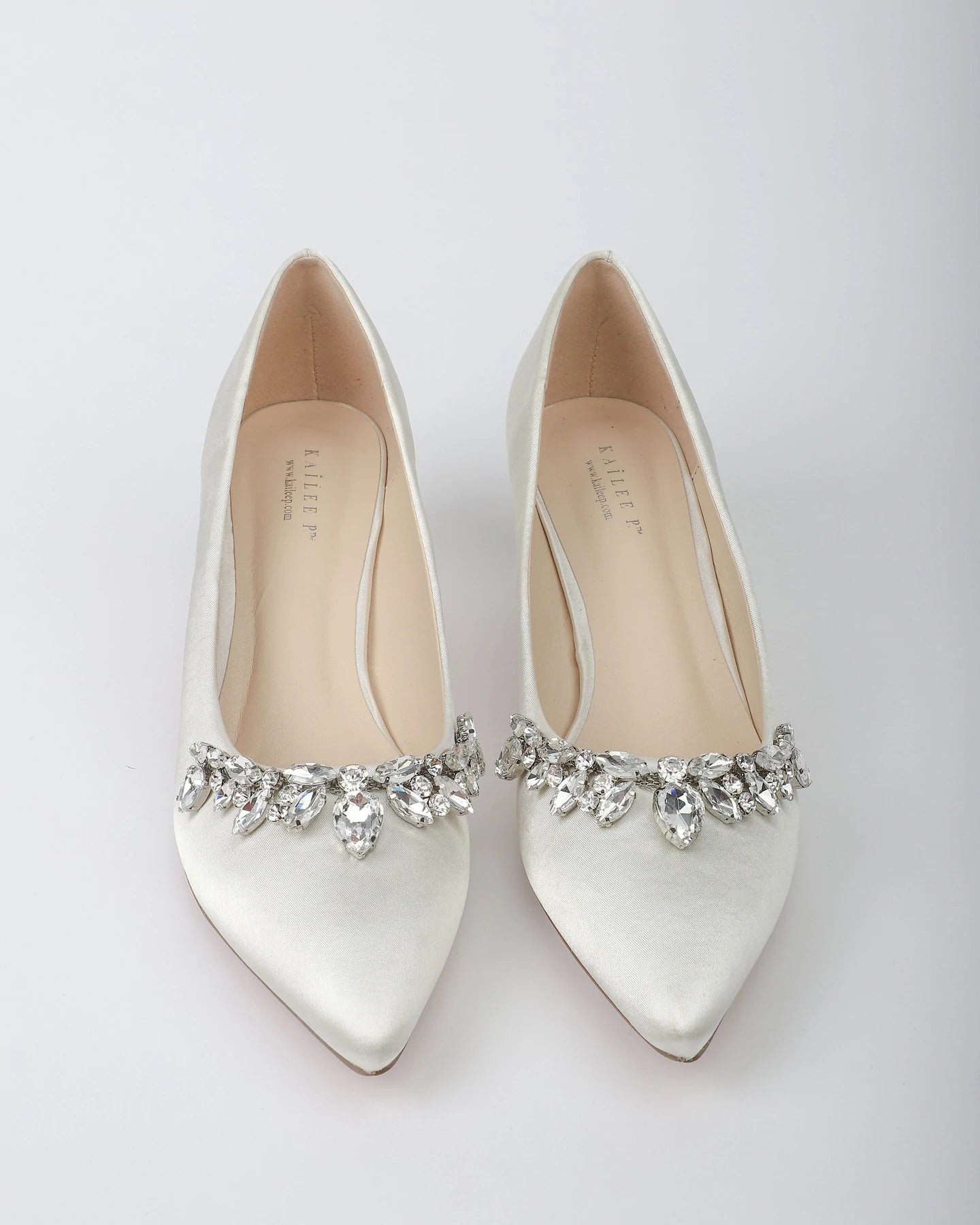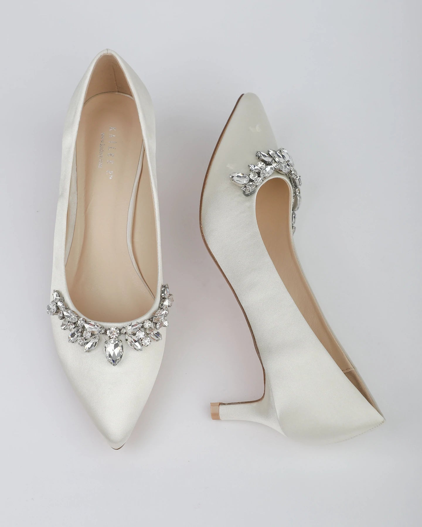 Klassisen tyylikkäät matalakorkoiset ja teräväkärkiset korkokengät ylellisillä pisaroiden mallisilla koristekivillä. Näyttävä kenkä moneen sädehtivään juhlaan.