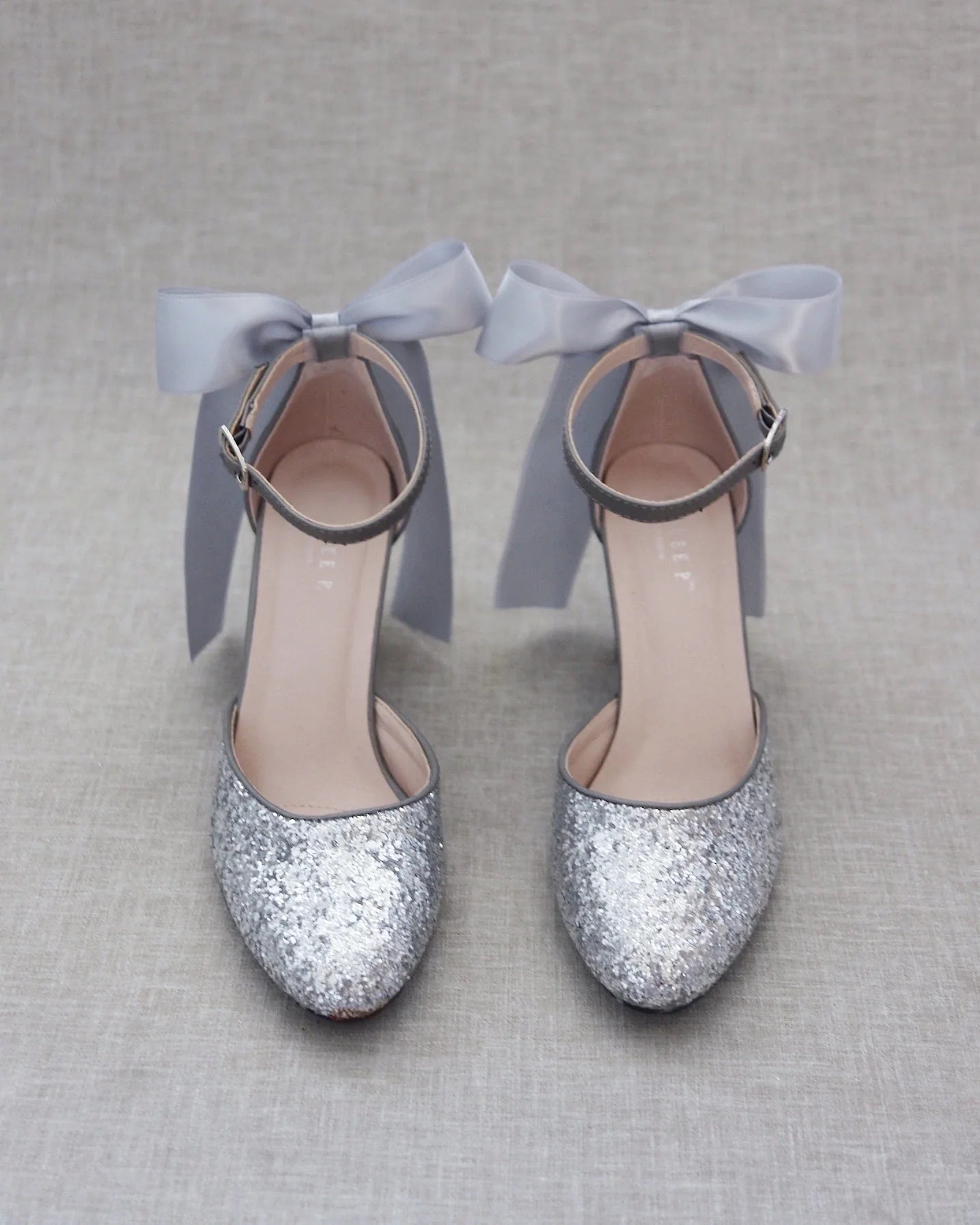 Kimaltavat glitterkorkokengät tukevalla tolppakorolla ja päkiäpehmusteella. Nilkassa näyttävänä lisänä kaunis satiinirusetti. Säihkyvät juhlakengät elämän tähtihetkiin!